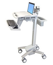 Ce chariot de soins de santé novateur, vraiment ergonomique et facile à déplacer comprend un ajustement de hauteur assis à debout et une tablette de clavier à inclinaison arrière ajustable.