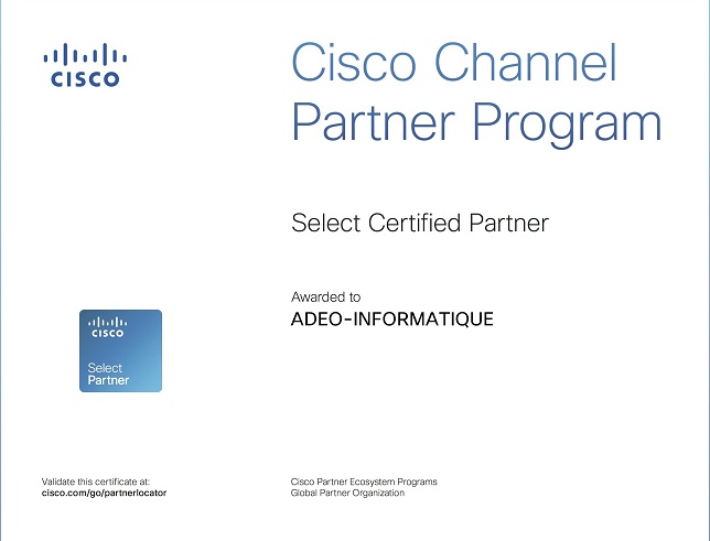 CISCO : ADEO INFORMATIQUE certifié Cisco Select Certified Partner