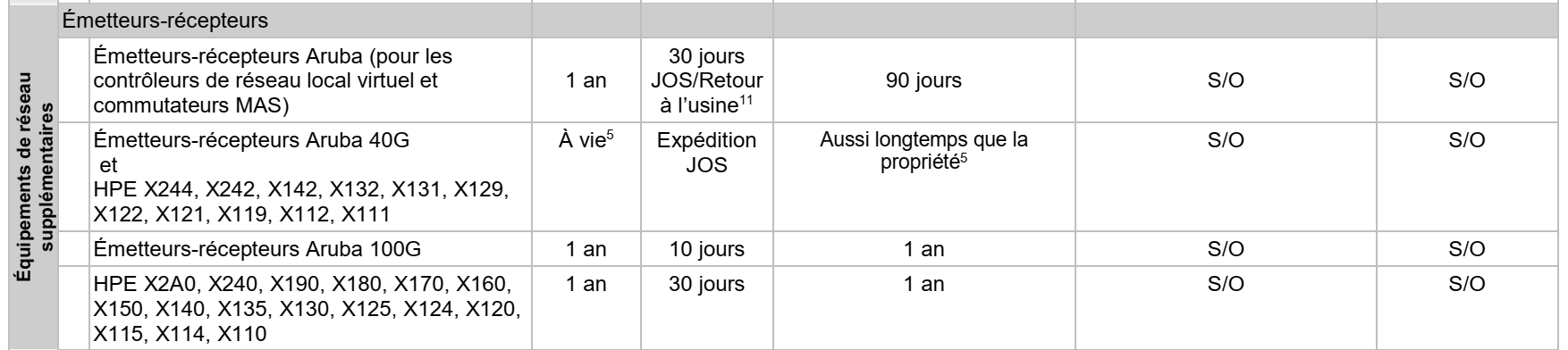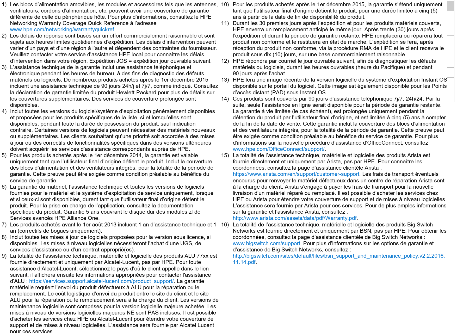 La version la plus récente de ce document est disponible à l’adresse www.hpe.com/networking/warrantysummary