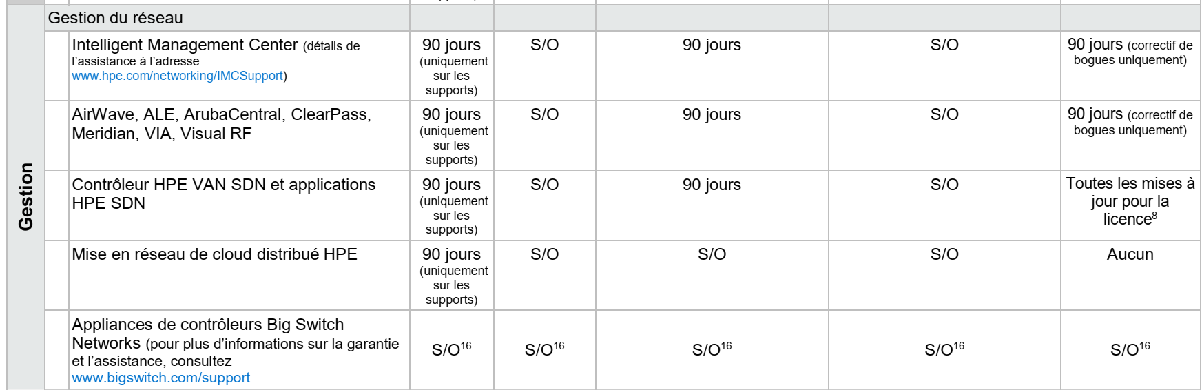 Récapitulatif de la garantie et de l’assistance des produits HPE Networking