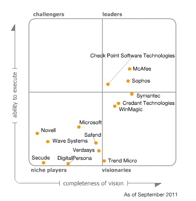 Gartner a reconnu Sophos comme leader dans son Quadrant Magique 2011 sur la protection des données mobiles, la référence du secteur pour l’évaluation des meilleurs fournisseurs sur le marché du chiffrement. Le rapport met en avant – entre autres choses – la croissance, le succès des ventes et la satisfaction des clients.