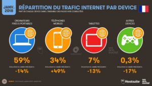 En France, le trafic Web sur smartphone et tablette représente 41 % du trafic Internet.