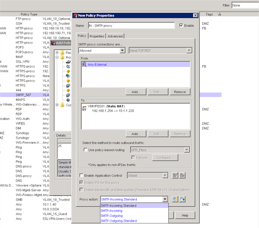 4. Cliquer sur « Ok » puis « OK », renommer l’action de proxy qui vient d’être modifiée et cliquer sur « OK ».